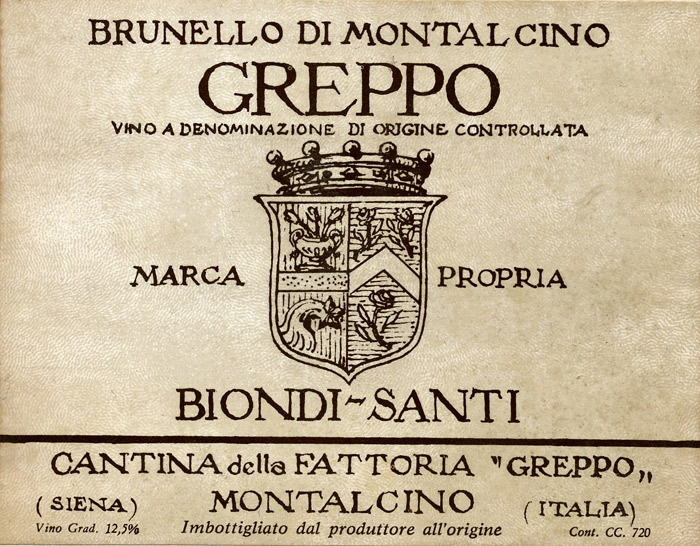 Infelizmente, regras nunca são absolutas no mundo dos vinhos. Neste caso, o nome do produtor, o mesmo Biondi-Santi, é apenas o terceiro elemento de maior destaque no rótulo. Greppo, neste caso, é o nome da principal plantação da vinícola. Devido à excelência das uvas plantadas lá, o produtor deu preferência por destacar o nome da plantação ao invés de seu próprio.